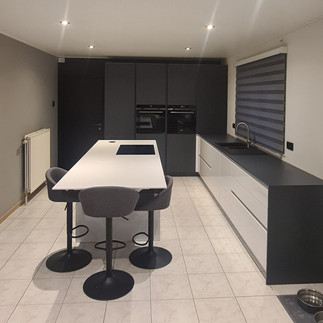Le contemporain en mode noir et blancChristian4 févr. 20231 min de lecture Cuisine laquée blanc brillante couplée avec du noir mat, la hotte est intégrée dans la taque de cuisson, le plan de travail est en Hi-mac sur l'îlot.